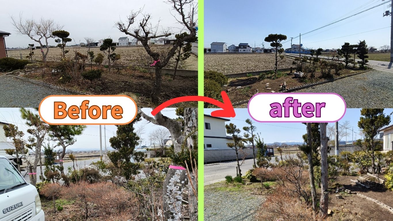 「スッキリしてお庭が明るくなって良かったわ!あっという間に作業が終わってびっくりしました!」