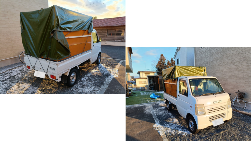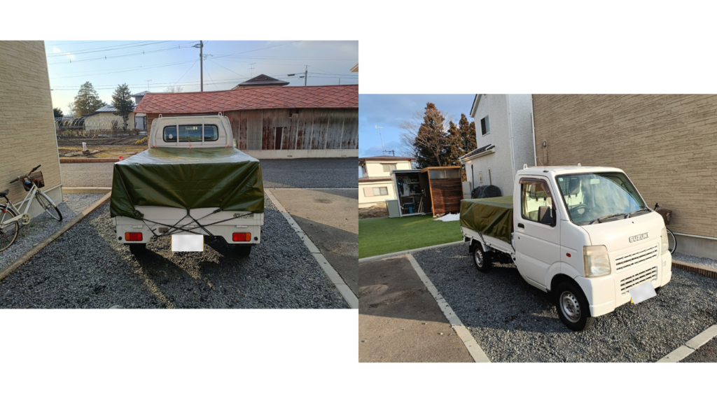 最後に荷台シートをかけるとこのように簡易的な幌に代わります。